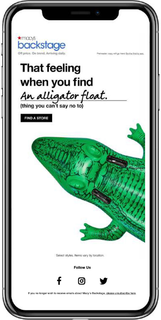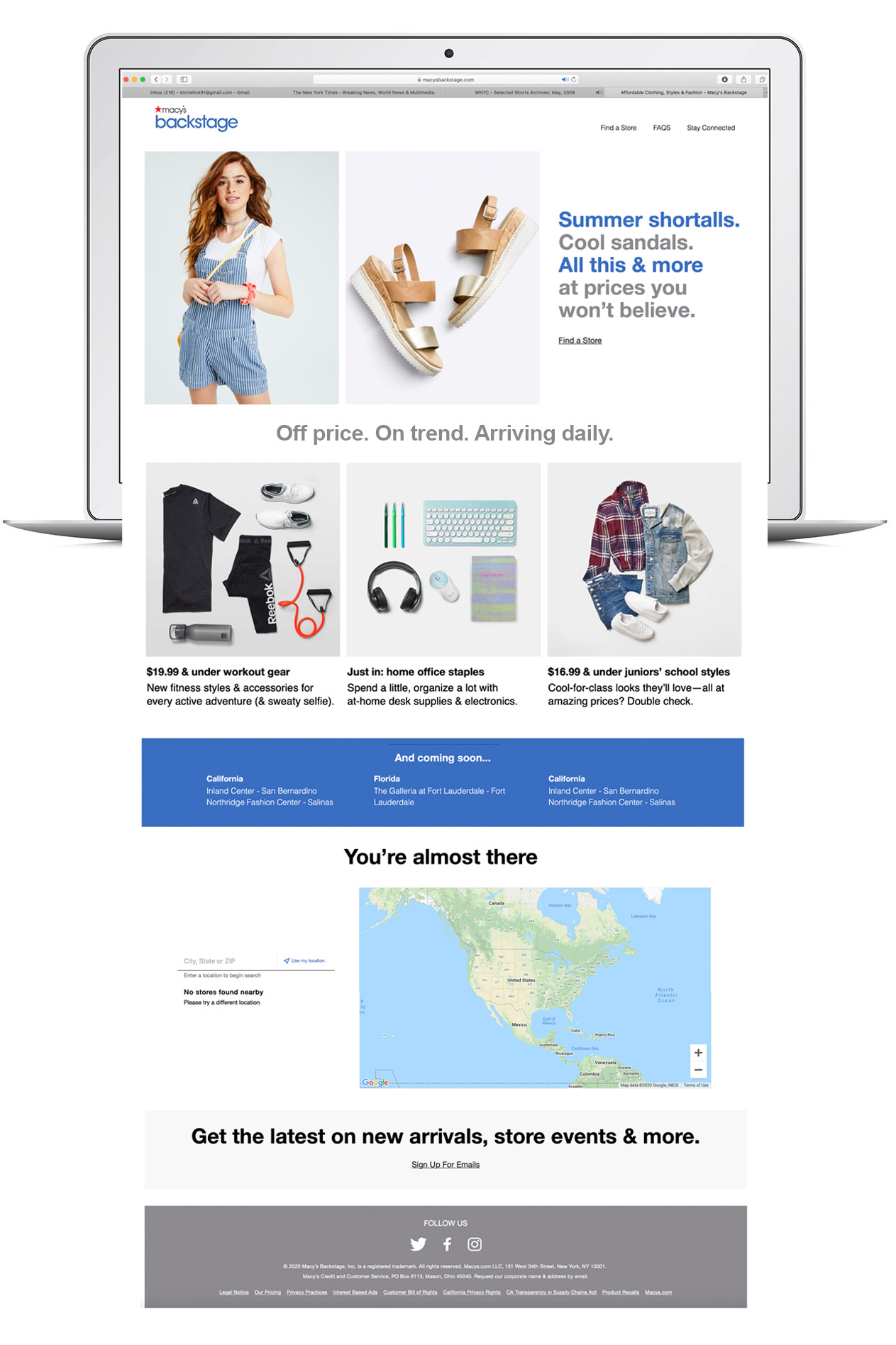 The goal: to simplify and modernize Macy's backstage, a brand within a brand. To stand out, clarify off price and build it's own audience separate from the big store.